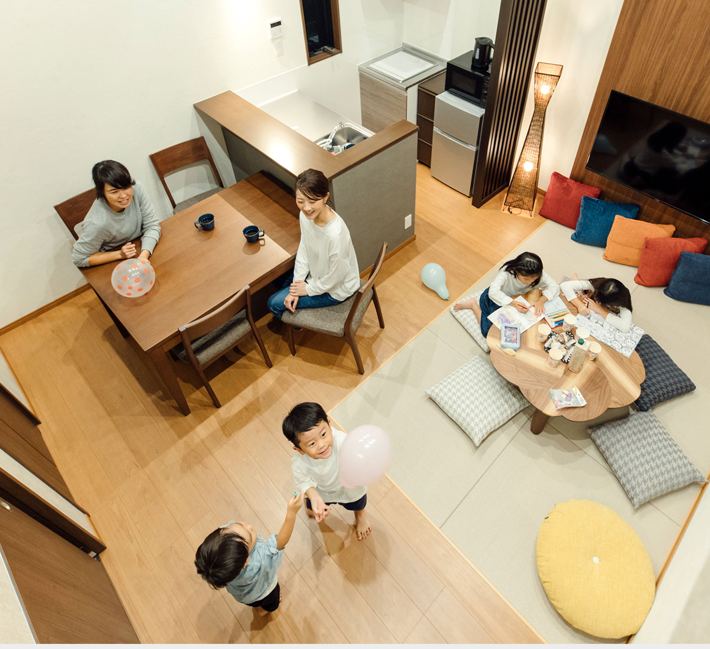 6名様まで宿泊できるので、カップルからご家族まで幅広くご宿泊頂けます。インテリアプランナーによって選ばれたおしゃれな家具で、まるでモデルルームにいるような気分を味わえます。旅行はもちろん、仲間との趣味の集まりや誕生日サプライズなどもおすすめです。ワークショップなどの会場としても。